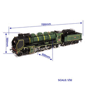 This locomotive, which was also known as La Princesa, represents one of the most glorious pages in the history of French railway transport. Pacific type locomotives, during their many years of service, pulled some of France's most emblematic trains, such as the famous Fléche d'Or.