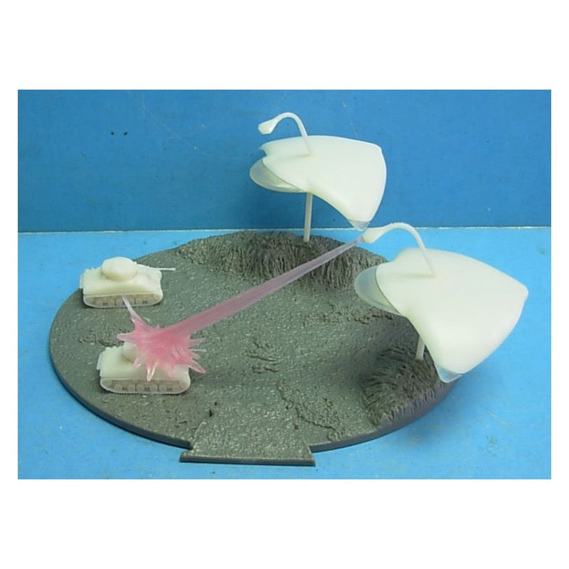 From George Pal's 1958 classic War Of the Worlds comes the War Machines Attack 1/144 scale injected plastic model kit Diorama. It features injected plastic and clear parts, full color box, tanks, death ray, diorama base and assembly instructions.  Requires painting and assembly.