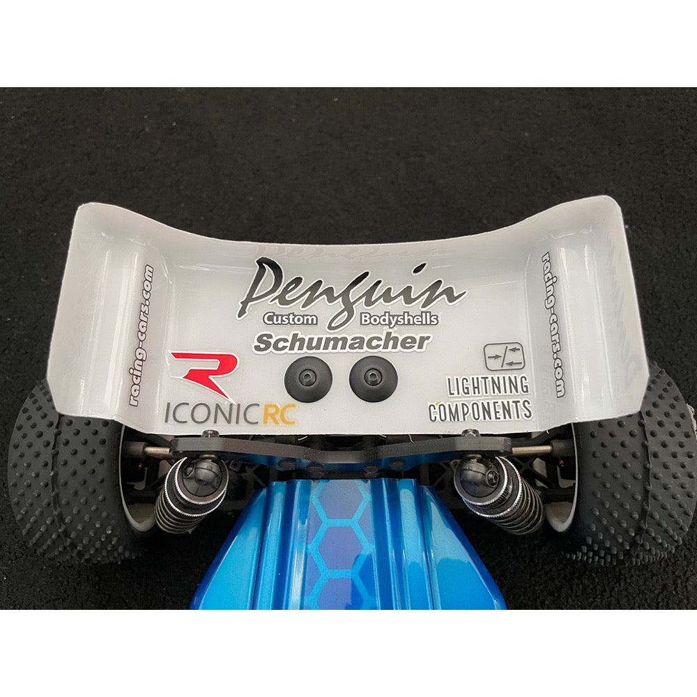 The rear wing is designed for 1/10th 4WD and 2WD buggy’s. It has a large flat profile to aid downforce, with a large variation on wing mounting points this wing will fit all models. It has multiple height gurney trim lines to fine tune the car in either outdoors or indoors.