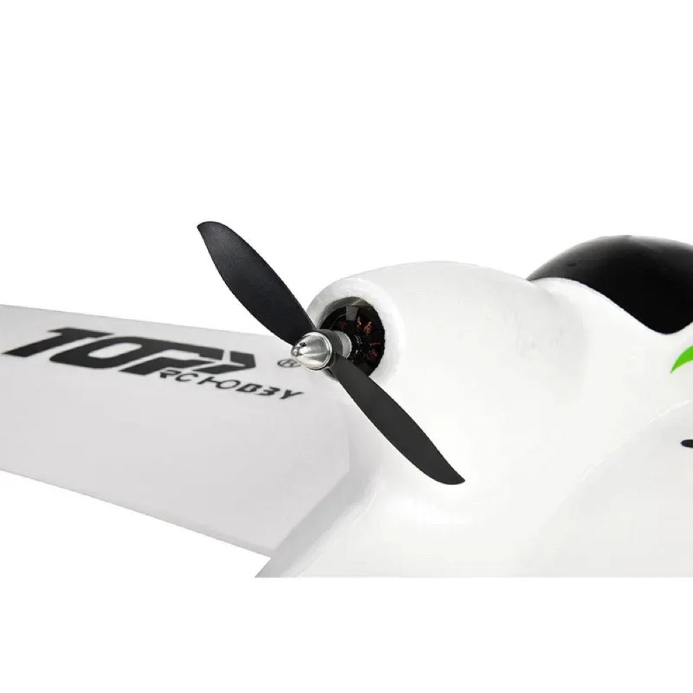 The Prime RC T1400 RTF glider is made from high-density EPO material making it durable and lightweight. With a pusher propeller design and great gliding performance, this affordable electric RC glider is perfect for beginners and experienced pilots. The Prime RC T1400 has all the elements to be considered one of the best RC planes for beginners. Made from super-tough EPO foam, everything is pre-installed so minimal assembly time is required, in fact, by the time you have charged a battery, it should be ready to fly! The combination of size, low wing loading, and a sleek fuselage makes for an excellent model with capable yet forgiving flight characteristics. The plug-in wings make the T1400 a practical model that is easy to transport to your favourite flying field and can be ready to fly in just minutes. With 4 channel control (ailerons, elevator, rudder, throttle) it can be flown as a stable trainer model or as a fun-filled 'soft-liner'.  The wide smooth underside of the fuselage even allows for rides off the ground from a shortcut grass surface. The model is supplied with a 6-channel radio in Mode 2 but can be easily converted to Mode 1 in a matter of minutes. A true RTF with battery and charger included. Looking for a Bixler alternative? This is the model for you!