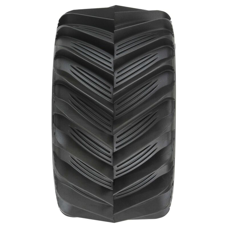 Are you looking for a scale and aggressive tire for your 1:10 Monster Truck? Pro-Line has the solution for you! Introducing the Demolisher 2.8" tire that features extremely sharp chevron style tread that will bite into any surface. Just like full-size monster truck tires that have been modified and grooved for maximum performance, the Demolisher tires feature scale grooves in between the chevron style tread for exceptional scale realism and extremely sharp tread. As you should expect from Pro-Line, the all-new Demolisher tire is made from soft and sticky rubber that will give your Monster Truck maximum wheelie-popping traction.