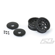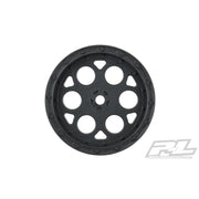 This is a pair of Showtime 2.2" Front Sprint Car Dirt Oval Wheels. Pro-Line is proud to introduce the new Showtime 2.2" Sprint Car Wheels made specifically for Dirt Oval racing! The Showtime wheel features a scale spoke pattern like full-size sprint car wheels and includes an optional dish wheel face cover if that is the look you prefer. Pro-Line's new Sprint Car wheels are made from lightweight and durable black nylon and feature a 12mm hex molded into the wheel to fit as many applications as possible. Standard 2.2" Buggy tires glue directly to the Showtime wheel, so you can choose which tires will take you to the winner's circle. It's time for you to make the big show with Pro-Line's new Showtime wheels! Get yours today!