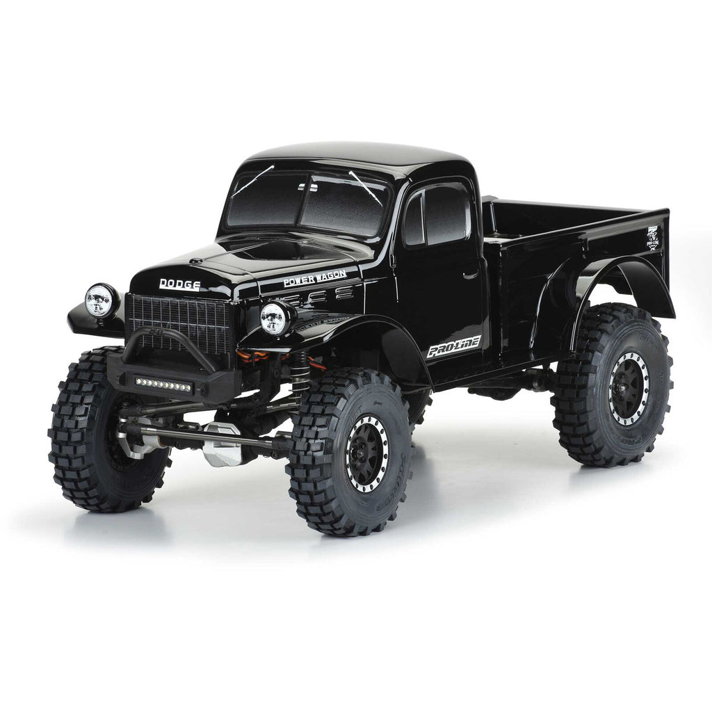 This is a 1946 Dodge Power Wagon Tough-Color Black Body for Crawlers. Pro-Line is proud to introduce the 1946 Dodge Power Wagon Black body for Scale Crawlers made from completely black polycarbonate Tough-Color material! This First Gen Power Wagon body style comes as 2 pieces (Cab and Bed) for an ultra-realistic look that stays true to the original military-inspired 4x4 truck that civilians could buy. The Tough-Color polycarbonate is made from black material, so you never have to worry about paint peeling or chipping off. Realistic window stickers are also included!