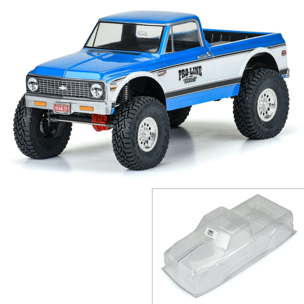 This is a 1972 Chevy K-10 Clear Crawler Body. Pro-Line has a brand-new body for all your bowtie Scale Crawler fans: the classic 1972 Chevrolet K-10!