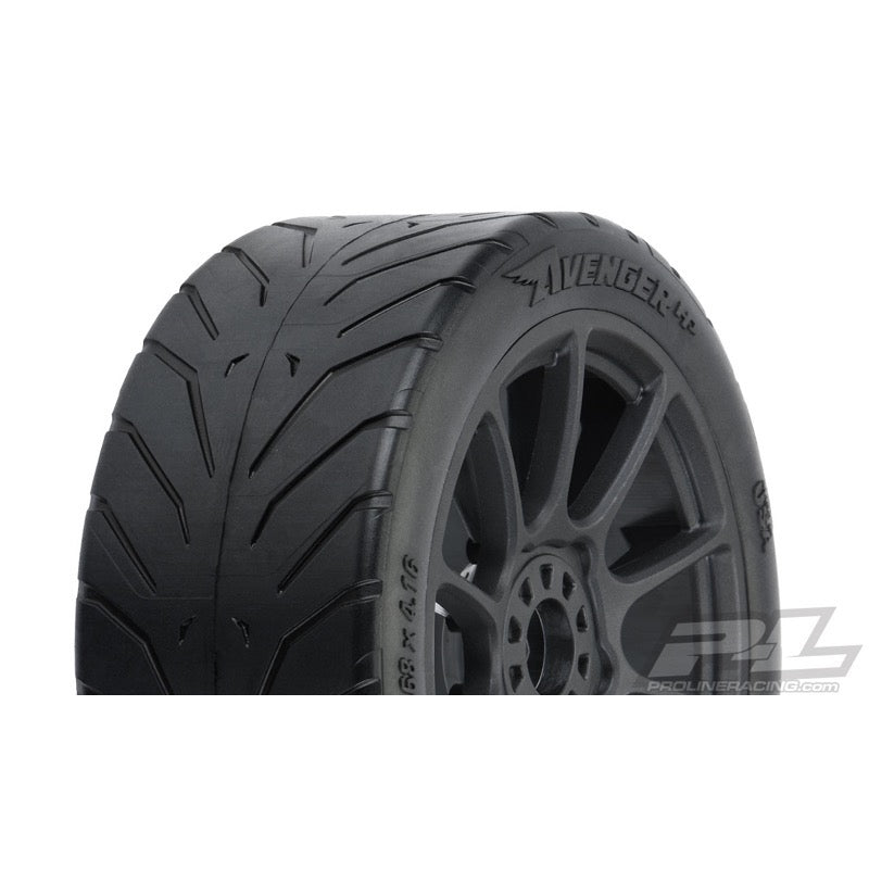 Proline 9069-21 Avenger HP Street Belted 1/8 Buggy Tyres Mounted for Front or Rear Mounted on Mach 10 Black Wheels