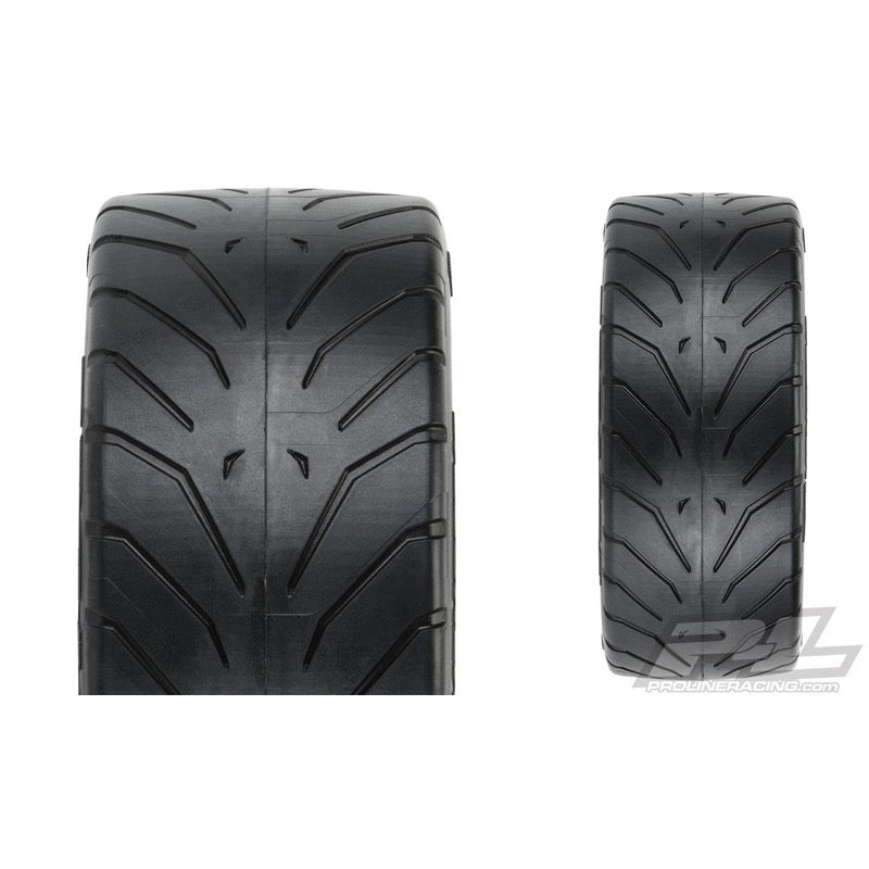 This is a pair of Avenger HP 1:8 Buggy Belted Street Tires. Pro-Line is proud to introduce the History-making Avenger HP BELTED 1:8 Buggy street tires! Pro-Line has developed the technology to mold a High-Performance herringbone weave pattern Belt inside of the all-new Avenger HP. These belted street tires were specifically made for 1:8 Buggies that love to go fast and will not balloon or expand during use. These belted tires will help you go straight and put the power down!