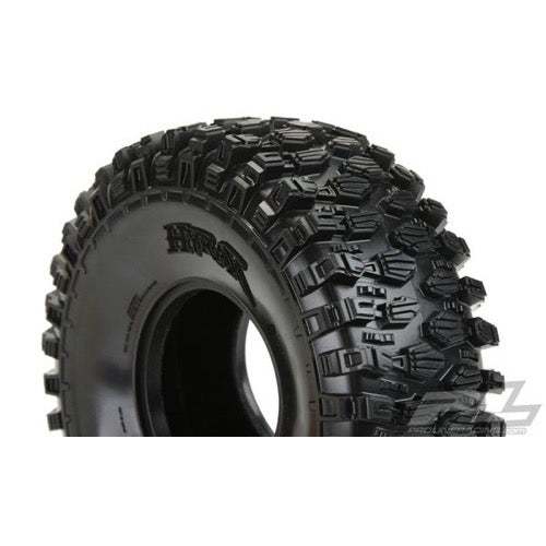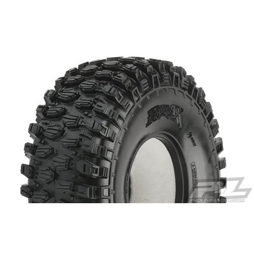 This is a pair of Hyrax 2.2" Tires. The future of 2.2" Rock Racing Tire Performance has arrived with Pro-Line's all-new Hyrax Tire! Designed from the ground up for maximum grip on the toughest terrain, the Hyrax tire is ready for anything the Race might throw at you. The Hyrax features an aggressive and open tread pattern with each tread block containing multiple Sipes for incredible tread flex. The highly detailed connected tread on the sidewall of the Hyrax extends out for unmatched side-hilling performance. The Hyrax also features futuristic stepped tread blocks that create even more forward gripping edges that dig into slick rock like no other scale tire Pro-Line has produced to date! The Hyrax is made from Pro-Line's Legendary G8 material, so you know it provides performance you can depend on.