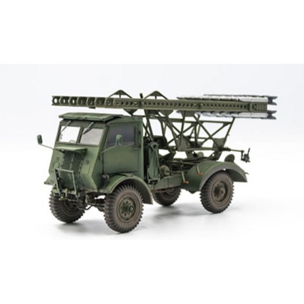 Model kit of the robust BM-13-16 on the WOT 8 chassis, an effective Soviet rocket artillery during World War II. With its powerful 132 mm multiple rocket launcher, it was able to engage a wide range of targets.