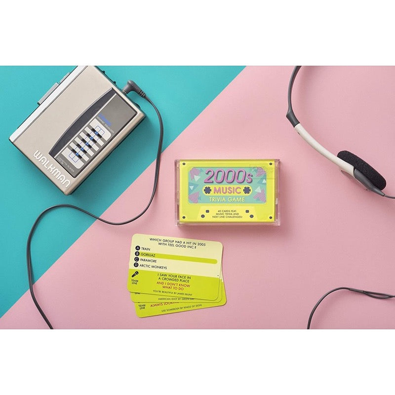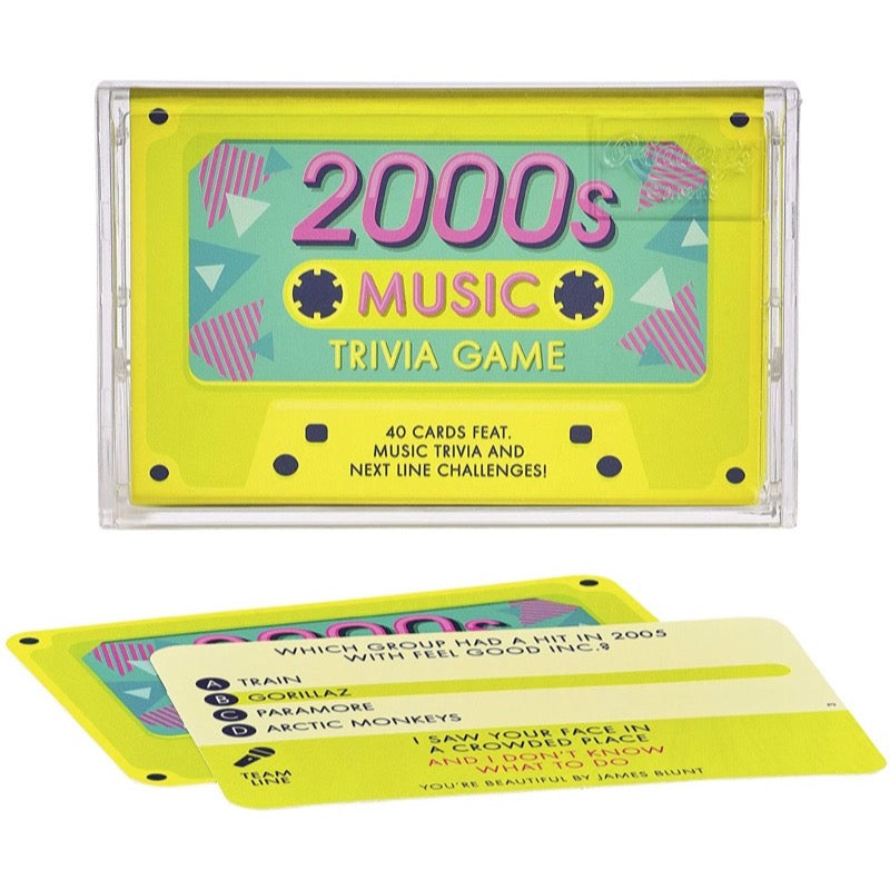 • Relive the decade that brought us skinny jeans, gel pens and floppy disks with 40 cards featuring music trivia and next line challenges!