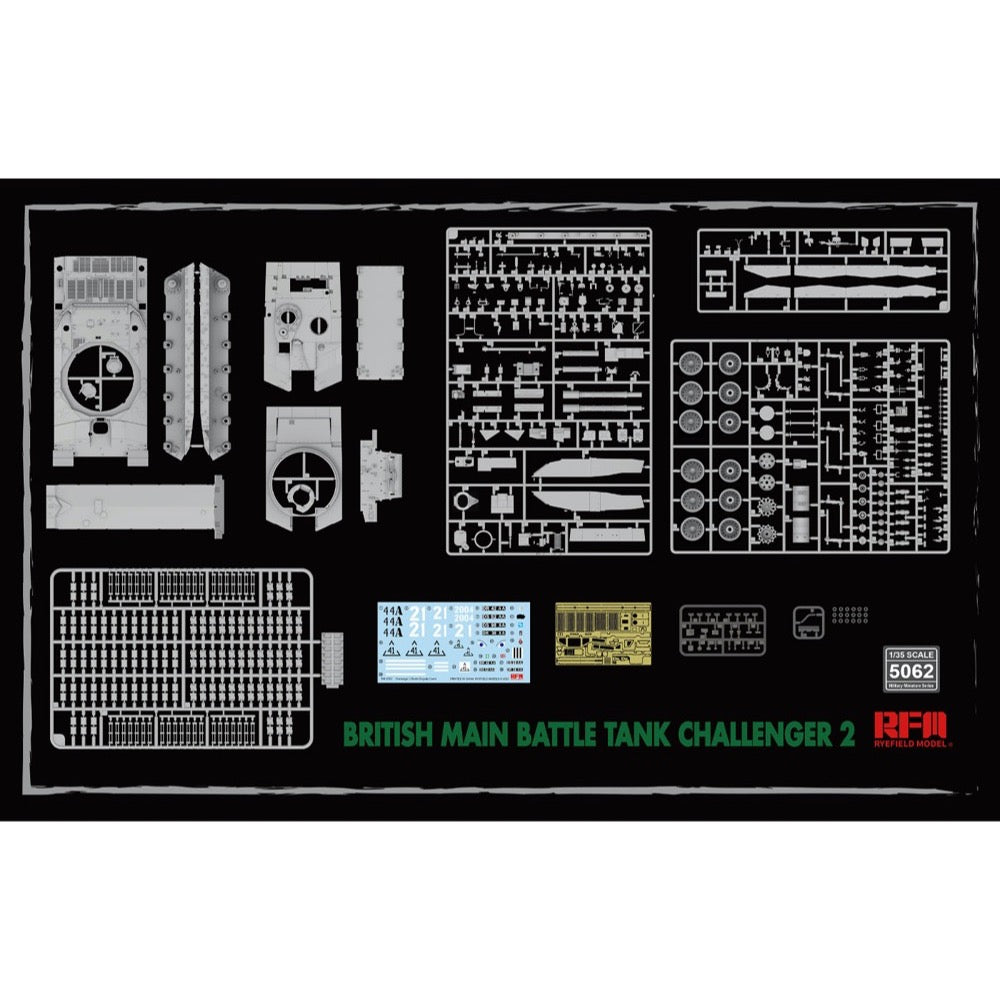 Rye Field Model's plastic kit of the Challenger 2 British main battle tank features workable track links! Photo-etched parts are also included, as are decals for four types of markings. (Figures are not included.) Assembly required. Paint and glue not included.