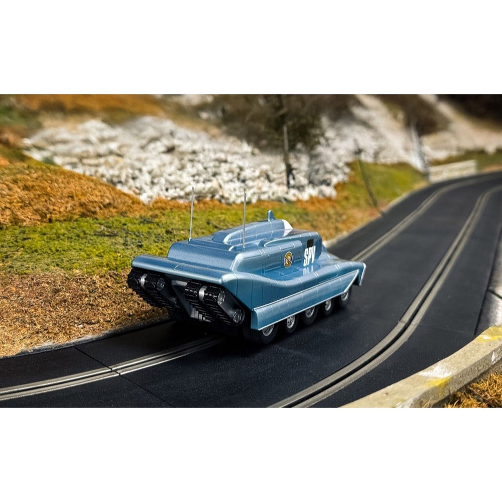 Enter the world of Spectrum with the iconic Spectrum Pursuit Vehicle (SPV) from the classic Captain Scarlet series. This armoured powerhouse, known for its futuristic design and battle-ready performance, is now available as a Scalextric model. With its sleek, menacing lines and unmistakable livery, the SPV was a key weapon in the fight against the Mysterons. Driven by Captain Scarlet and his team, this vehicle was always ready for high-speed chases and daring missions.
