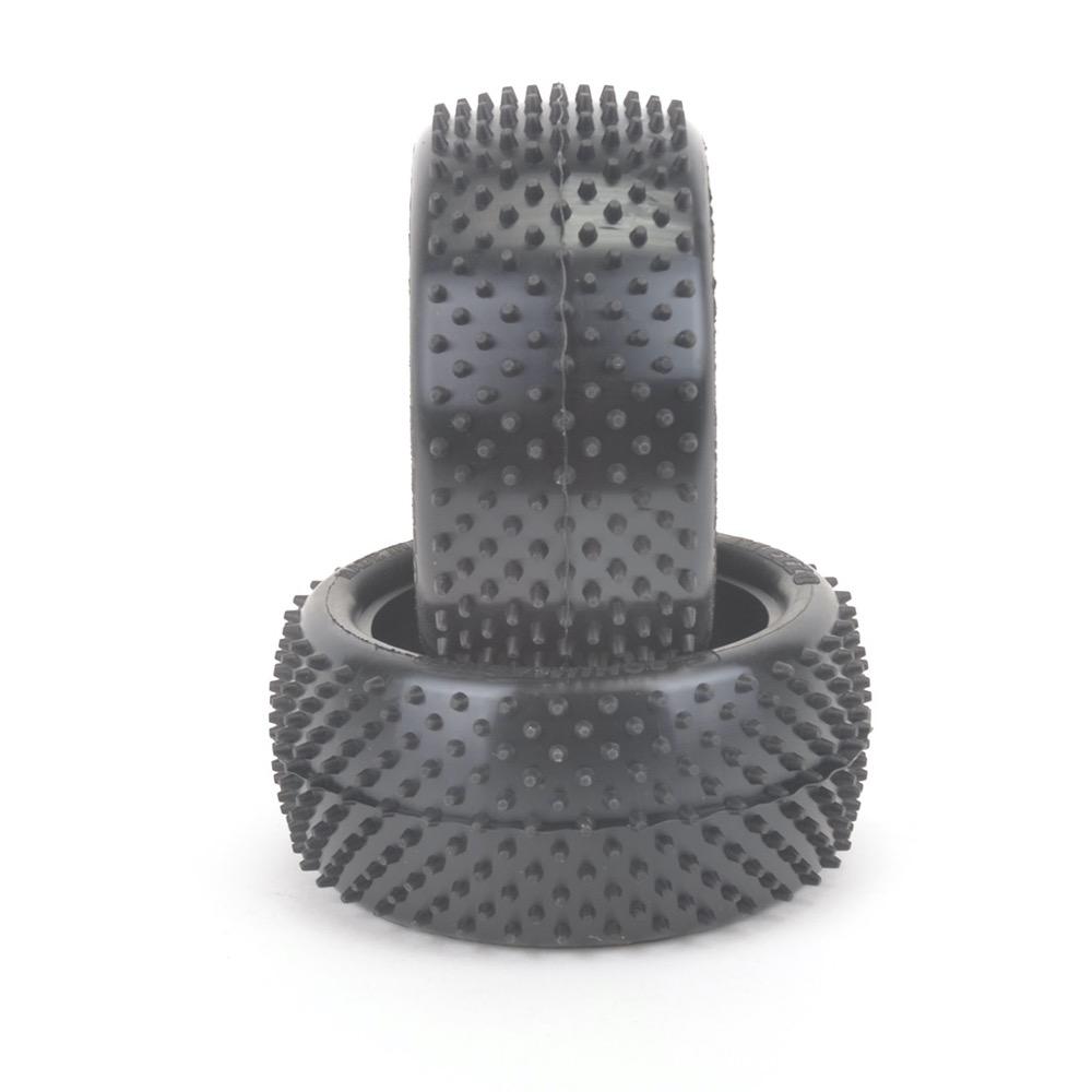 It has a varied pin type across the tyre, enabling it to be more suitable to a wider variety of track conditions, including long and short pile astro. The pin type gives improved side traction whilst maintaining forward traction.