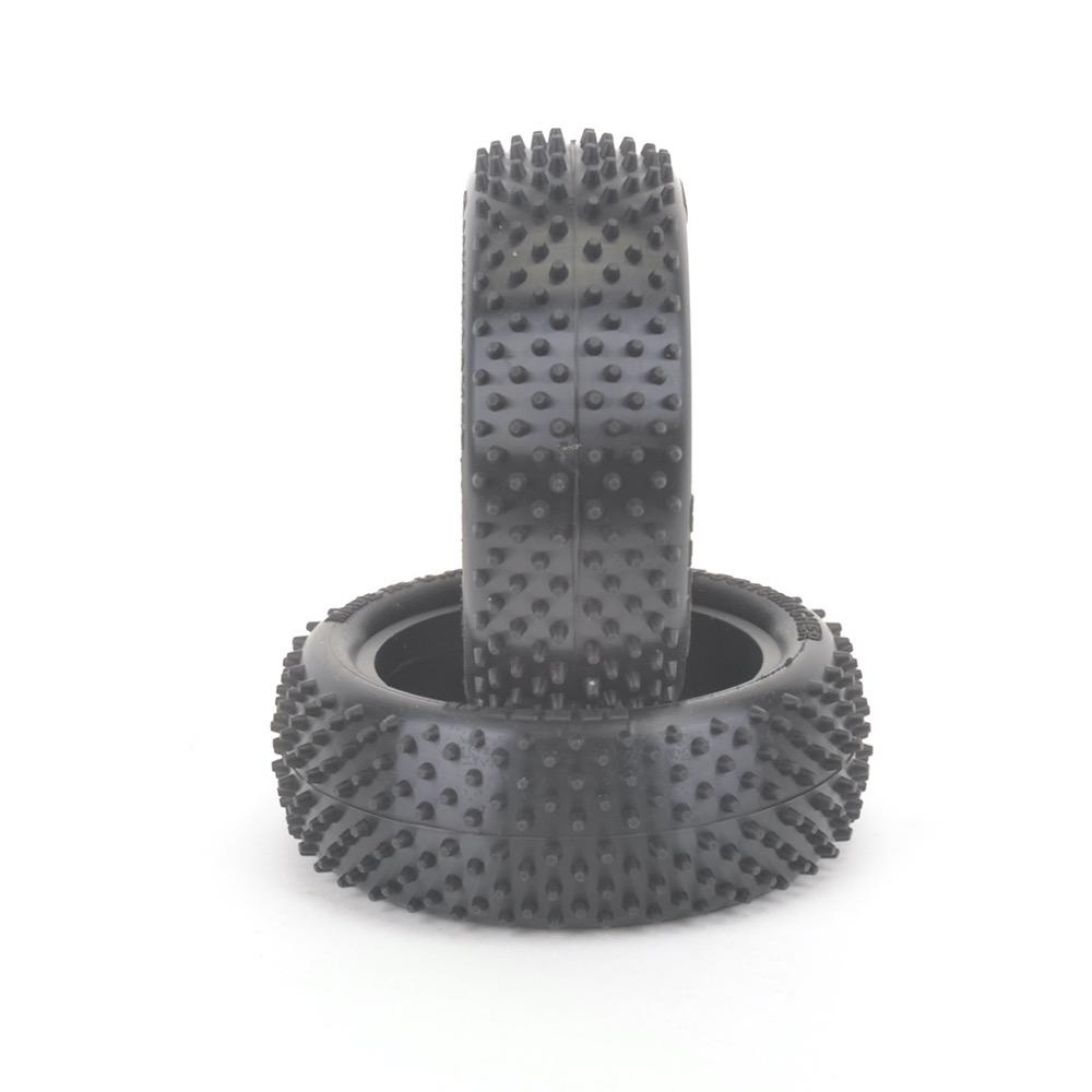 It has a varied pin type across the tyre, enabling it to be more suitable to a wider variety of track conditions, including long and short pile astro. The pin type gives improved side traction whilst maintaining forward traction.