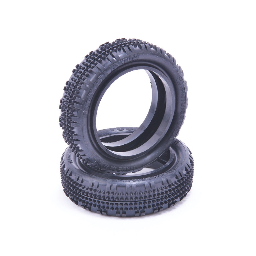 The Schumacher Fusion Slim 2WD front tyre is developed from the popular Low Profile Cut Stagger.