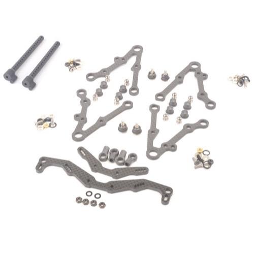 Included in the kit is four wishbones and pivot ball mountings and also new shock brackets for improved geometry. These shock brackets also include a horizontal rear body post mounting option for lower Centre of Gravity.