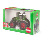 New model – new dimension: The Fendt 728 Vario. The agricultural machinery expert from the Allgäu region has given a major update to the proven mid-range models in the 700 series, and has thereby significantly raised the bar for agricultural utility vehicles. A healthy 280 HP is concealed under the bonnet of the 728 Vario, made possible by its new 6-cylinder engine from AgcoPower. Thanks to the all-round light on the roof, the tractor is always ready for work even late in the day and in poor light, and it reliably and accurately performs all tasks out in the field. The cab with its movable mirrors can be removed, and this makes driver access easy. In addition, this also provides easier access to the steering wheel used to steer the tractor, because, for an even more realistic driving and play experience, the model has axle pivot steering on the front axle. In addition, the standard SIKU front and rear coupling made of metal, with movable elements, makes it possible to raise and lower agricultural machinery. Ideally suited for use in the playroom and garden: The bonnet, front and rear fenders, and the model’s chassis are made of metal, and are very robust. The rubberised tyres with original agricultural profile also provide optimum grip on any surface. With this model, as always with siku, the headlights and lamps are printed, true to the original.