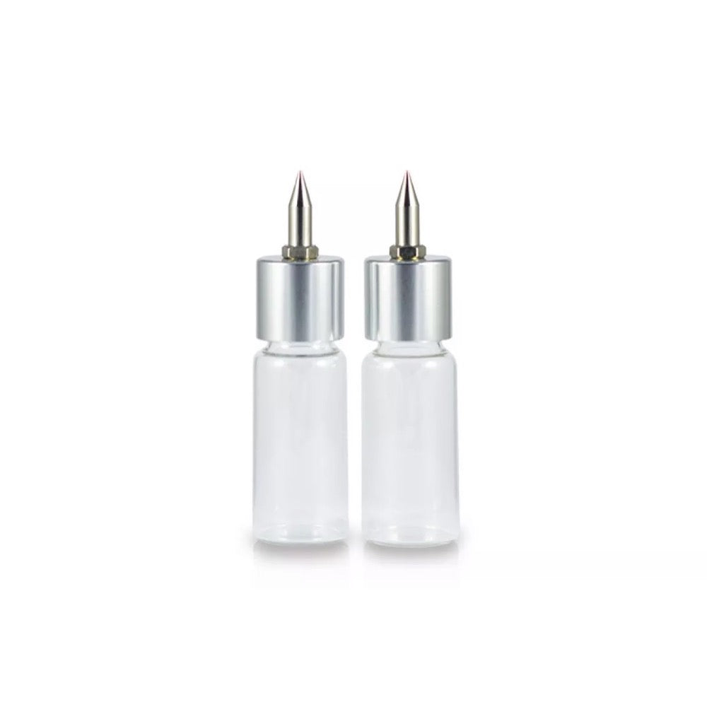 This unique glass bottle is used with the Sparmax SR Flyer airbrush. The 15ml fluid bottle is made of glass and comes with both a standard cap and bottle cap with attachment. The cap attachment has a built-in nozzle and 0.4mm needle and PTFE O-ring. With this, each bottle is able to swap in and out of the airbrush efficiently and with no in-between clean-up. A simple turn of the bottle while attached changes the line width of the color.