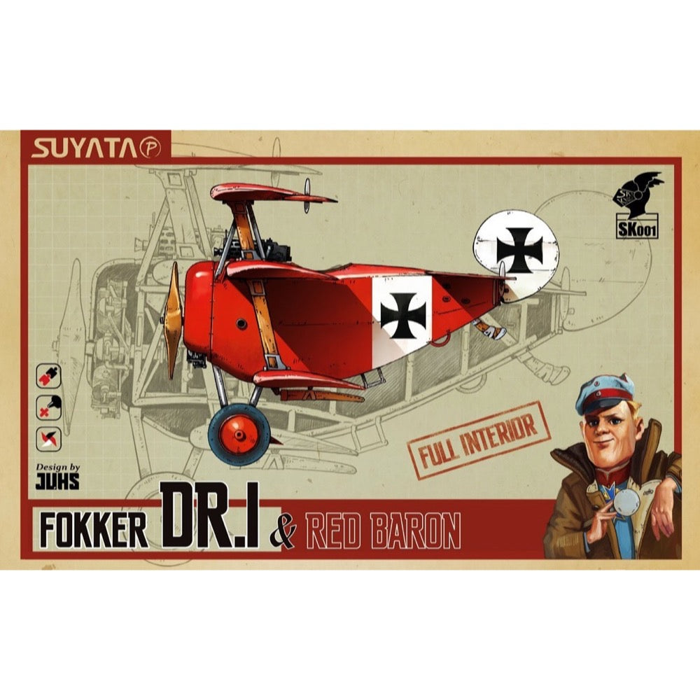This non-scale kit from Suyata brings us the Fokker Dr.I triplane, as flown by Manfred von Richthofen, the "Red Baron," in a super-deformed cartoon style