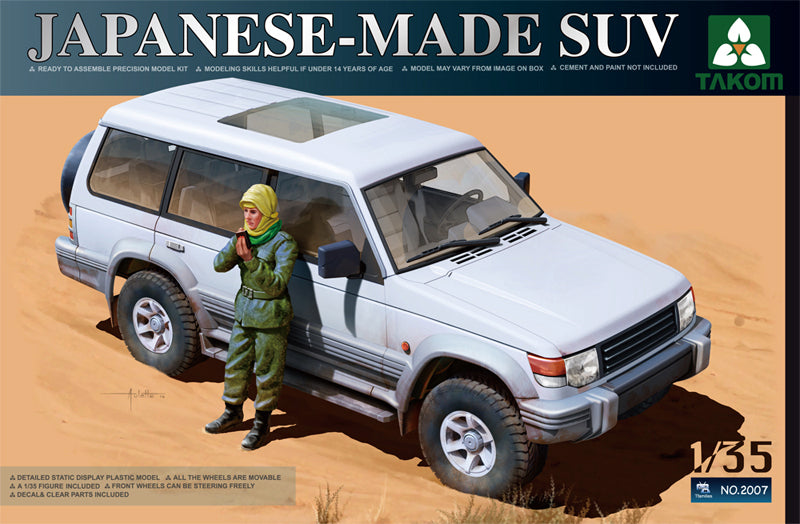 Takom produces a kit of a modern era Japanese made civilian SUV. This kit may be used as a replica accessory for many modern era military dioramas, or on its own as a subject.