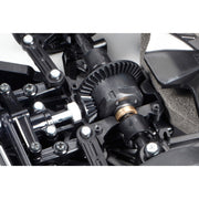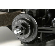 The shaft driven 4WD TT-02 chassis employs a longitudinal layout with the battery on the left and the motor on the right, to offer excellent stability. In addition, it features identical left and right suspension arms and uprights for ease of assembly, plus easy-to-maintain gearboxes. It is a highly adaptable chassis, as it offers 2 different wheelbases, 2 ground clearance settings and 2 tread set-ups in addition to a range of 10 possible gear ratios. It is not short on looks either, with brake disc-shaped wheel hubs and stylish front bumper supports.