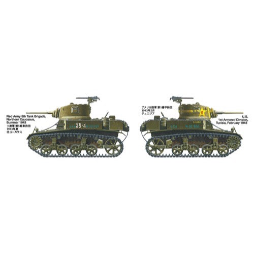 Spring 1940: watching on as Nazi German forces swept through Western Europe, U.S. military planners concluded that a replacement was needed for their M2A4, which was rapidly looking obsolete. Their immediate answer was the M3 light tank, which began production in March 1941, the original design employing a riveted hull and 250hp engine, with firepower provided by the 37mm main gun. Late production variants had a new lowered turret without cupola, with some later models having their sponson machine guns removed. The M3 not only fought in U.S. colors in North Africa, it was also supplied to the Red Army via Britain, serving in reconnaissance and infantry support roles.