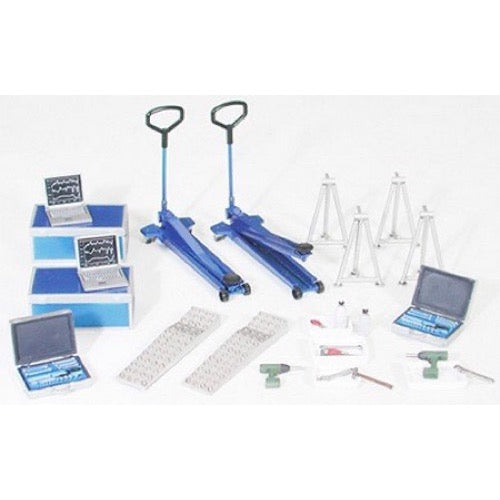 • Includes parts for replication of tools such as car jack, stand, sloped board, toolbox, part box, impact wrench, and spanner.