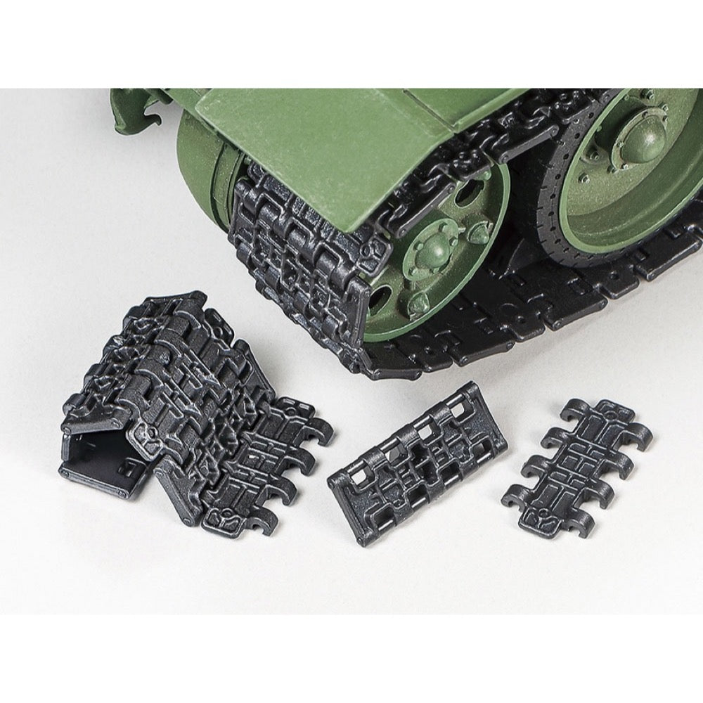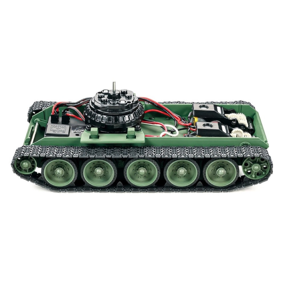 The T-34-85 gets an updated re-issue with a modern transmitter and control unit set, plus new assembly type tracks! The T-34-85 was essentially an answer to the dominating German Tiger and Panther armor. It was manufactured from 1944 to 1946 and contributed to the Soviet march on Germany. Servos, battery pack and charger are sold separately.