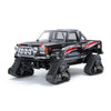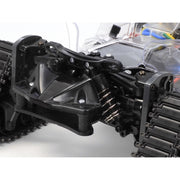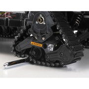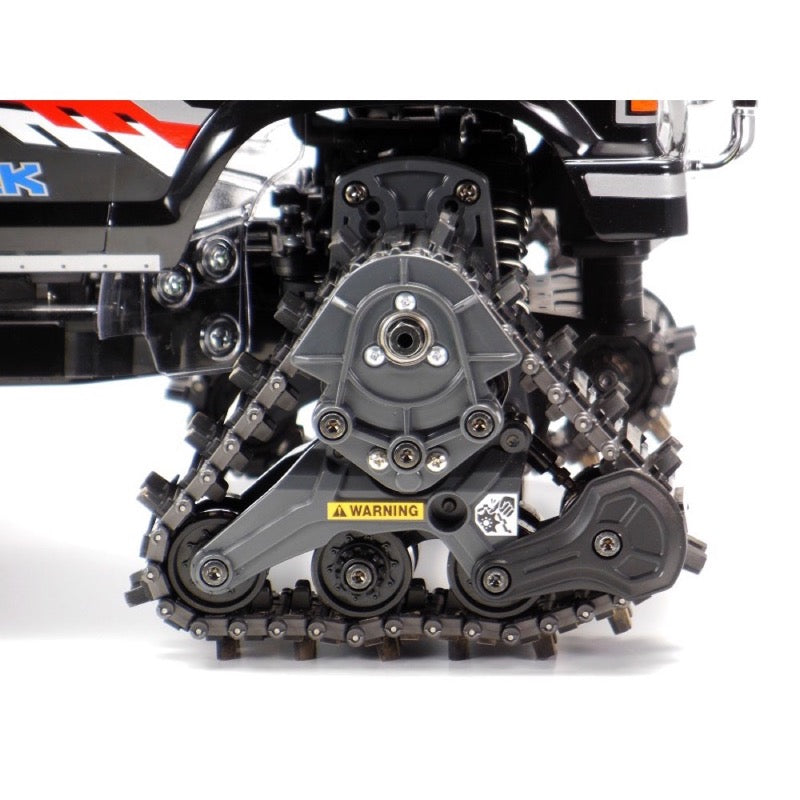 This kit uses a new variant of the TT-02 chassis with three-sided track units in place of the wheels: the result is awesome traction that can be used to take on rough terrain. Furthermore, the polycarbonate truck body comes already pre-painted in Tamiya PS-5 black.