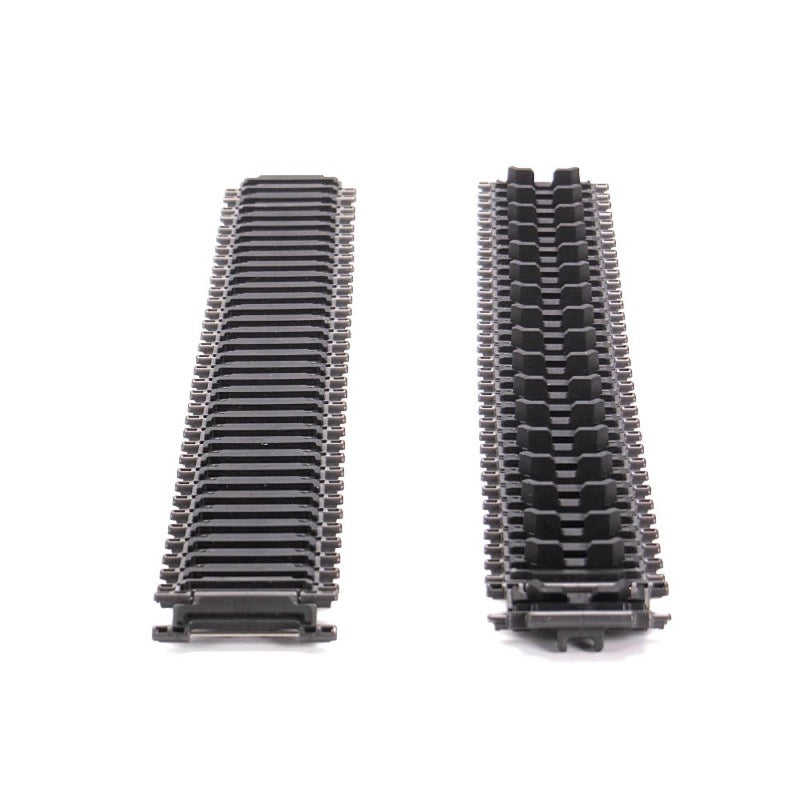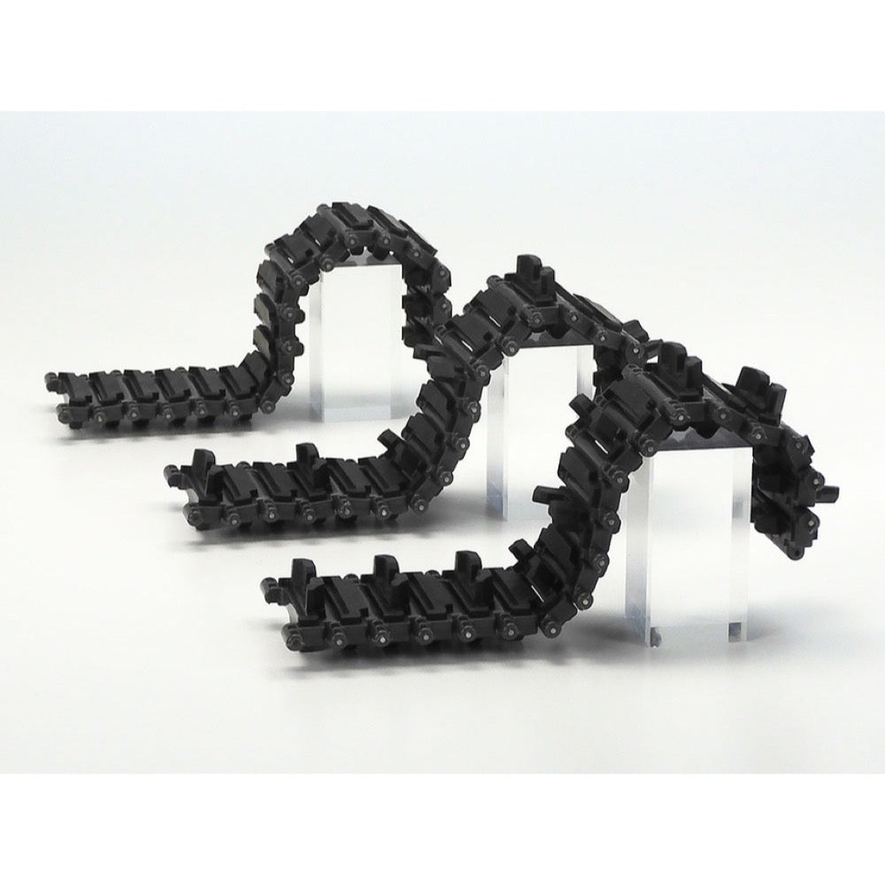• Each of the three-sided track units is 39.3mm in width and has a contact area of 60mm length. Tracks require assembly from link parts, and offer efficient traction.