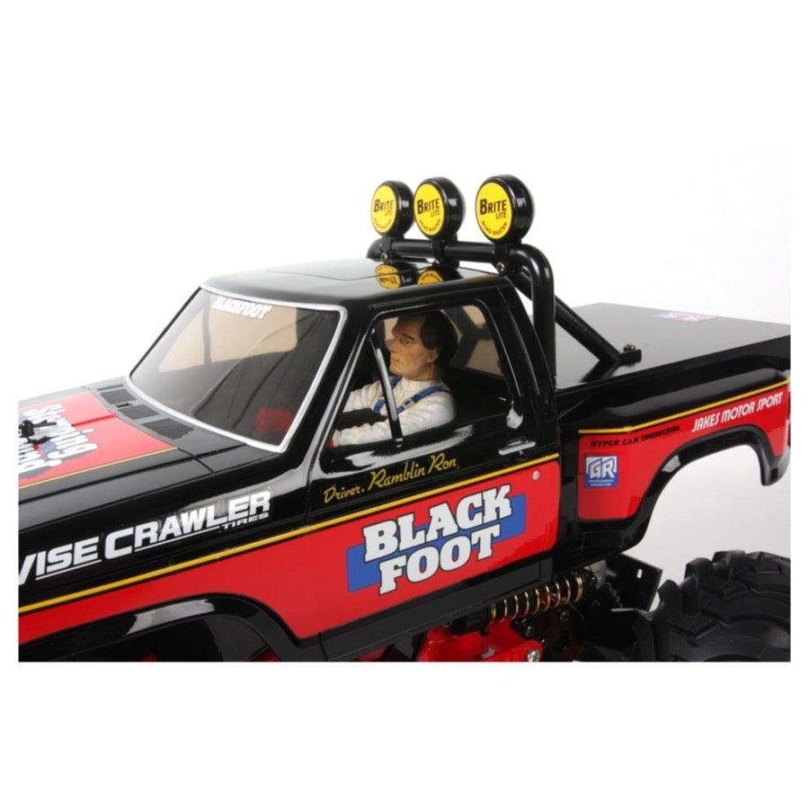 This re-release version of the Blackfoot assembly kit features a chassis with a number of updates while keeping largely to that used on the original off-road car released in 1986. It includes a highly realistic ABS body with roll bar and metal plated front grille parts. The kit also comes with colorful marking stickers and a driver figure.