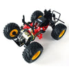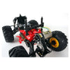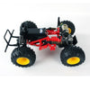 This hardy model's rear-wheel drive chassis is based around a durable red ABS space frame to withstand all-action off-road driving. 4-wheel independent suspension uses CVA oil dampers, and has double wishbone front and trailing arm rear setups. Superlative cushioning and grip are provided by 123mm-diameter, 60mm-width lug pattern tires on yellow wheels. Efficient and durable universal shafts come with rubber boots. A sturdy sealed gearbox protects the differential inside from dust and dirt.