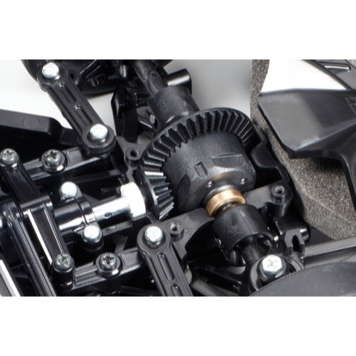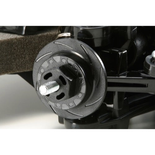 The shaft driven 4WD TT-02 chassis employs a longitudinal layout with the battery on the left and the motor on the right, to offer excellent stability. In addition, it features identical left and right suspension arms for ease of assembly plus easy-to-maintain gearboxes. It is a highly adaptable chassis, as it offers 2 different wheelbases, 2 ground clearance settings and 2 tread set-ups in addition to a range of 10 possible gear ratios. It is not short on looks either, with brake disc-shaped wheel hubs and stylish front bumper supports.