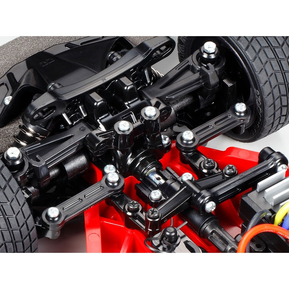• A special red version of the TT-02 Lower Deck (Hard) is included, giving the model superb rigidity.