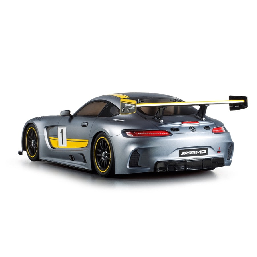The stunning Mercedes-AMG GT3 is a production race car made for the FIA's GT3 class, and first unveiled at the Geneva Motor Show in March 2015. It employs a lightweight body with carbon fiber panels over an aluminum space frame, a large rear wing and diffuser, plus a monster 6.3-liter naturally aspirated V8 engine. This R/C model assembly kit depicts the car as it was at the Geneva Motor Show, its polycarbonate body capturing the regal form of the short-deck long-nose racer inclusive of the stylish grille. Separate parts are included to depict the side mirrors and distinctive rear wing. Also included in the kit are marking stickers to recreate yellow design accents, car number, AMG logos and more. Our new Tamiya Color Spray for Polycarbonate PS-63 Bright Gun Metal has also been recently released to create a truly impressive paint job for your model!