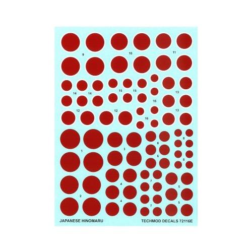 Techmod TM72116 1/72 Japanese National Insignia/Hinomaru 16 Sizes with and without White Outlines Camouflage and Markings Versions