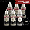 Each paint is part of a Flexible Colour Triad System: a segment, or family, of paint colours that are made using the same root colour. Inside each Flexible Colour Triad are six colours that range from dark to light with a consistent hue. With this system, you can easily select paints that create a natural colour progression on your miniatures.