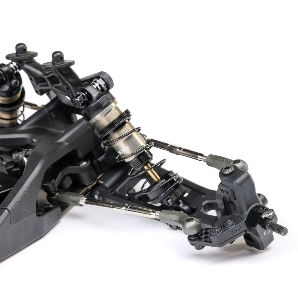 The 22X-T features new ball studs and rod ends with 5.8mm balls for interference-free movement. The larger ball studs provide more undercut surface area to hold the rod ends in place while minimizing the friction in your suspension. The rod ends feature an opening that lets you make quick and easy roll center changes without popping the rod end off of the ball stud.
