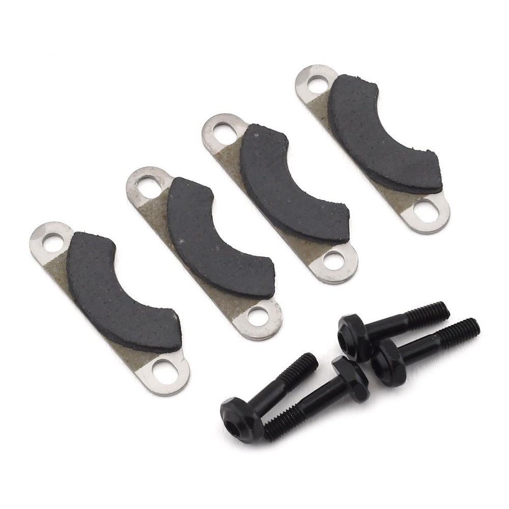 This is a replacement Team Losi Racing 8IGHT-X Brake Pad and Screw Set, including four pads and four screws.