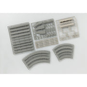 This is a parts kit for turning Mini Curve and Super Mini Curve Rails into tram tracks. The tram design uses a modern asphalt surface.