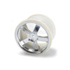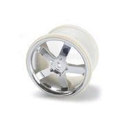 These beautiful 3.8" Hurricane wheels offer a unique, high-tech style and are sized to mount low-profile tires. The horizontal bead helps grab the tire, reducing the stress placed on the glue joint by tire expansion. The tire bead is left unchromed for fast, easy tire gluing. Fits 14 mm wheel hubs.