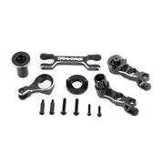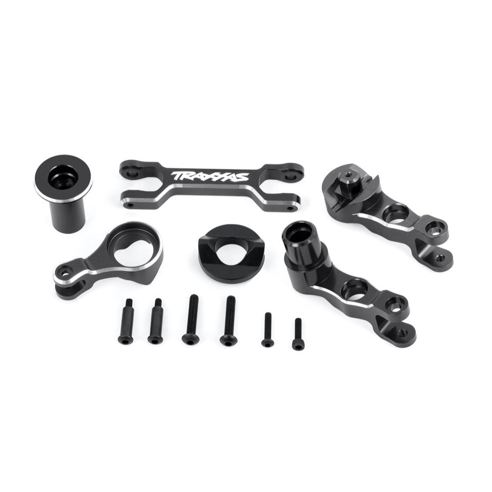 Enhance the steering precision, strength, and looks of your X-Maxx® with this aluminum bellcrank steering assembly. Machined from tough 6061-T6 aluminum, these bellcranks add color and style to your machine. The brilliant hard-anodized finish allows the bellcranks to pivot precisely with sealed ball bearings for silky-smooth turning action. The set also includes aluminum supports, servo saver, double-shear drag link, upgraded tension spring, and mounting hardware. Add the 7747 aluminum servo horn for even greater strength and precision. Genuine Traxxas accessories are made by Traxxas, for Traxxas, to guarantee a perfect factory fit every time.