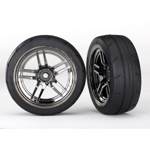 Traxxas 8373 1.9 inch Response Tyres and Split-Spoke Black Chrome Wheels Assembled and Glued VXL Rated Front 2pc