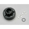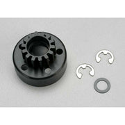 Clutch bell (14-tooth)/5x8x0.5mm fiber washer (2)/ 5mm e-clip (requires 5x10x4mm ball bearings part number 4609) (1.0 metric pitch). Traxxas clutch bells are made from durable steel for long-lasting performance. Use them to adjust your truck's final drive ratio for added tuning benefits.