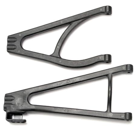Traxxas upper and lower rear suspension arm is constructed of black nylon. This is a set of optional left side, extended wheelbase suspension arms for the Traxxas Revo monster truck. Using these new suspension arms for the Traxxas Revo, you can extend the wheelbase of the truck to improve the handling on rough tracks and when jumping. You will also need a set of right side suspension arms if you plan to convert your entire truck.