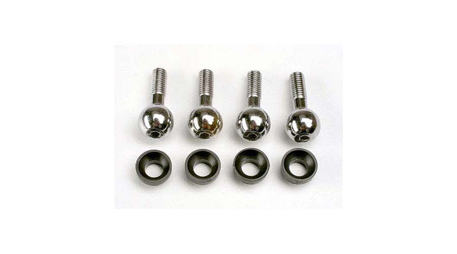 Traxxas pivot balls and bushings for the E-Maxx and T-Maxx for the Traxxas T-Maxx and E-Maxx 4WD Radio Control Monster Trucks. This package includes, Four pivot balls constructed of steel and four pivot ball cap bushings, plastic. Pivot balls fit into the axle carriers at each wheel. The pivot ball cap bushings fit between the pivot balls and the aluminum caps.  Requires: Threading the pivot balls through the axle carriers and into the suspension arms. Placing pivot ball cap bushings between the pivot balls and aluminum caps.