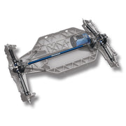 Slash 4X4's center driveshaft is formed from extruded aluminum. There are no dogbones to wear, no drive cups to wobble. The extrusion process allows the shaft to be hollow and lightweight with internal splines that fit directly and securely onto the input shafts of the front and rear drive assemblies. The shaft runs perfectly straight and true and offers superior durability. Traxxas engineers highlighted this important innovation with vivid blue anodizing and a laser-etched Traxxas logo.