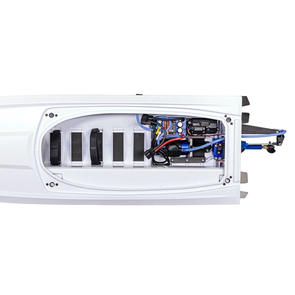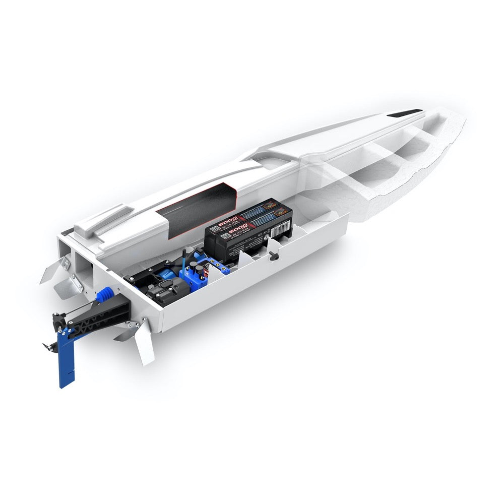 Grab a fistful of throttle and Spartan SR’s VXL-6s™ Marine power system transforms 22+ volts of LiPo power into furious acceleration. The high-performance prop digs in, getting the boat on plane quickly and efficiently as it slices through the water at speeds of 50 mph and beyond.