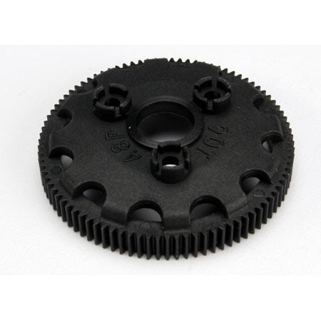 Traxxas 48 pitch  90 tooth is designed for models with a slipper clutch.   Black plastic construction.