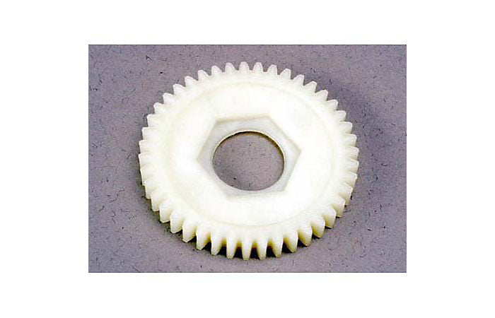 Traxxas replacement spur gear 43T for the T-Maxx 4WD Radio Control Monster Truck is the replacement 43 Tooth 1st Speed spur gear. This spur gear is installed in the transmission and meshes with the 2-speed drive gear.   Features: Replaces damaged or worn spur gears; Constructed of plastic.  Includes: One 43 Tooth 1st Speed Spur Gear for the Traxxas T-Maxx Truck
