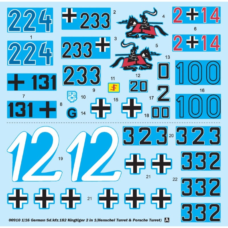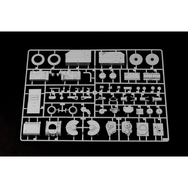 • Total Sprues: 46 sprues ,sprocket wheel , track links, poly cap, upper hull, lower hull ,turret inner wall, Henschel Turret and Porsche Turret